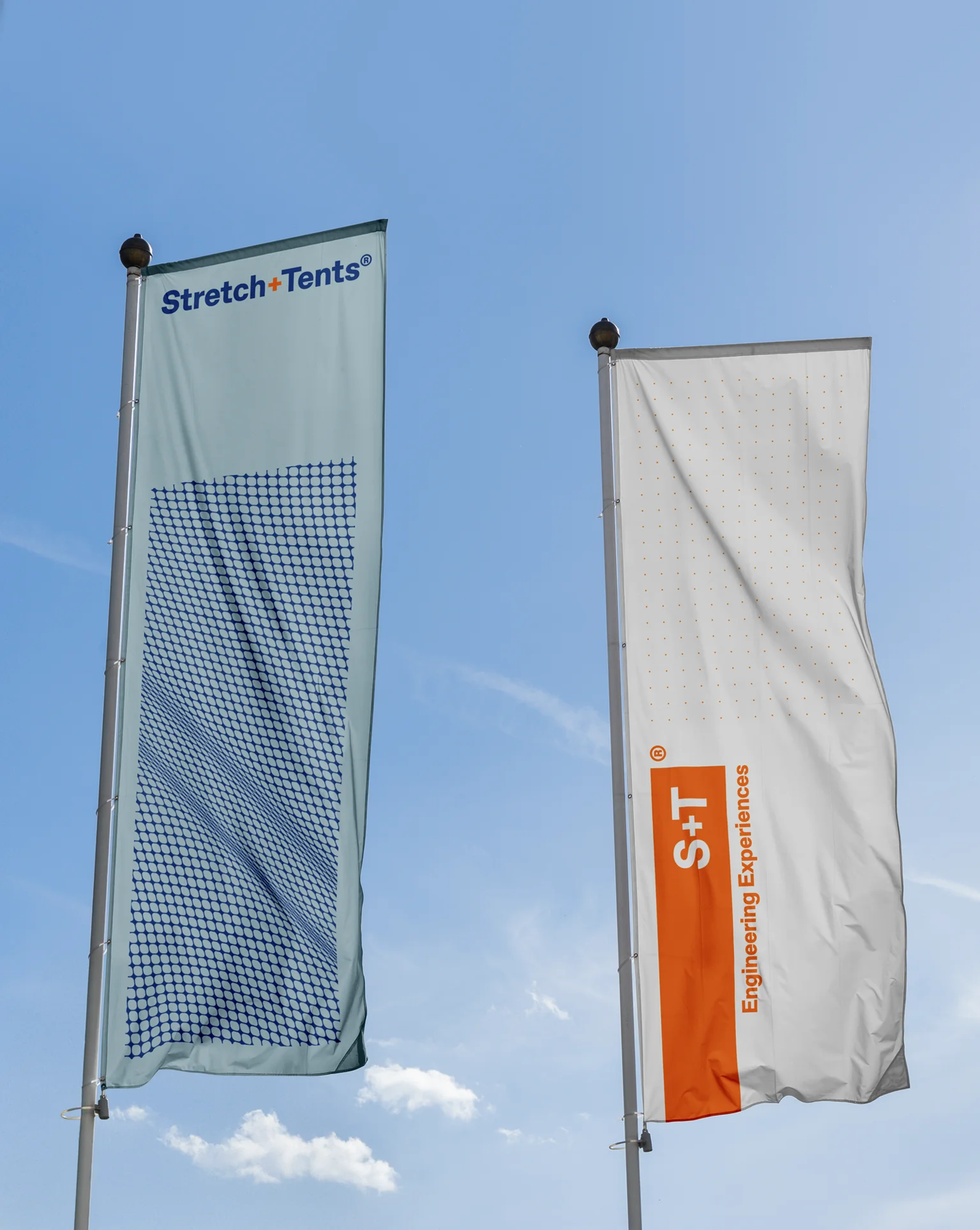 A new brand to help launch the next stage for event pioneers Stretch + Tents. Unconstrained by the limitations of traditional marquees, S+T can move from architectural plans to finished constructions in very little time, the end result being fascinating architectural spaces for large-scale festivals and events in an instant.
